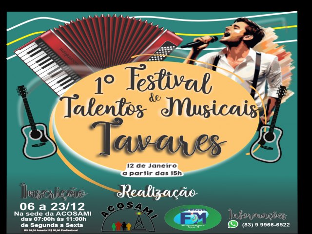 O festival tem como objetivo, valorizar os talentos locais de Tavares e os Primeiros colocados da cada categoria receberá um troféu de reconhecimento do talento além de ter seu trabalho mostrado pela programação da Rádio Comunitária São Miguel FM e pelas redes sociais.